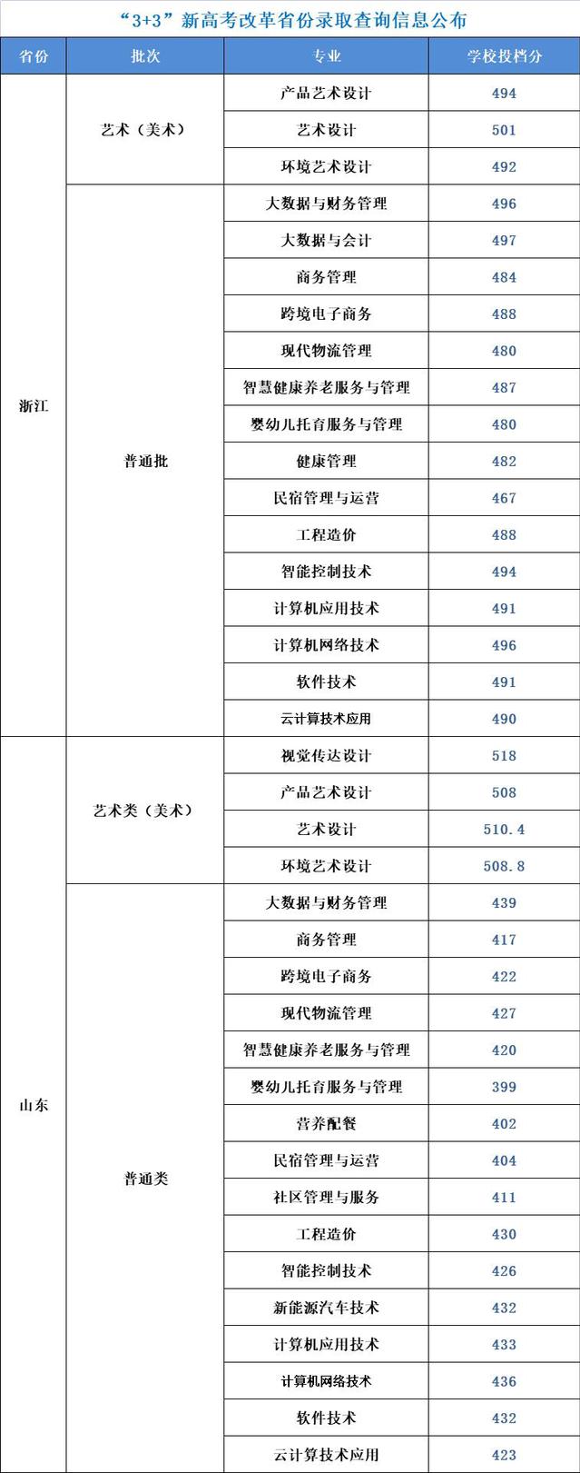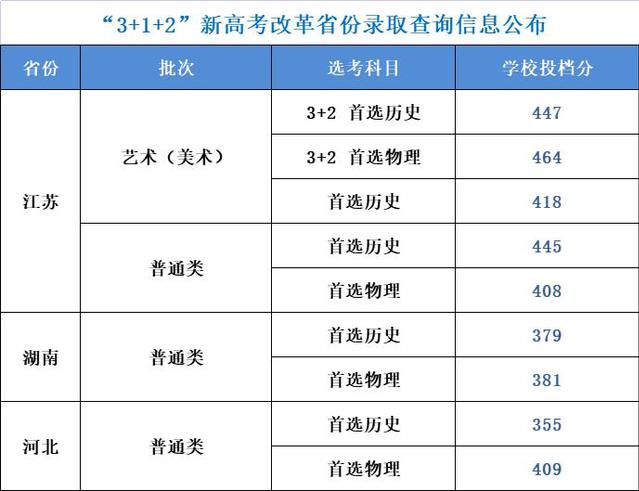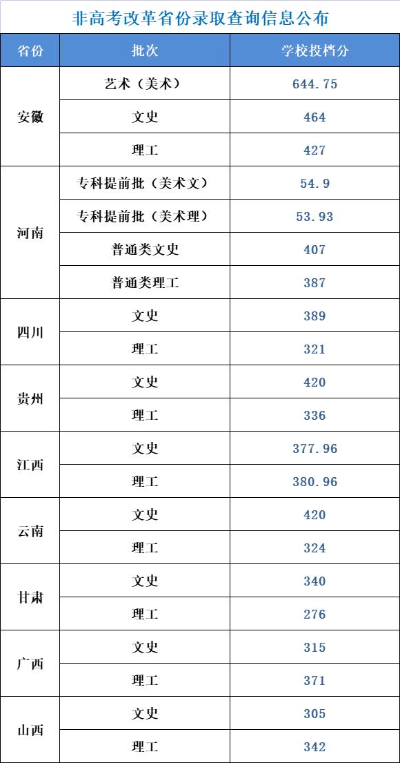 我校2022年招生省份高考录取线