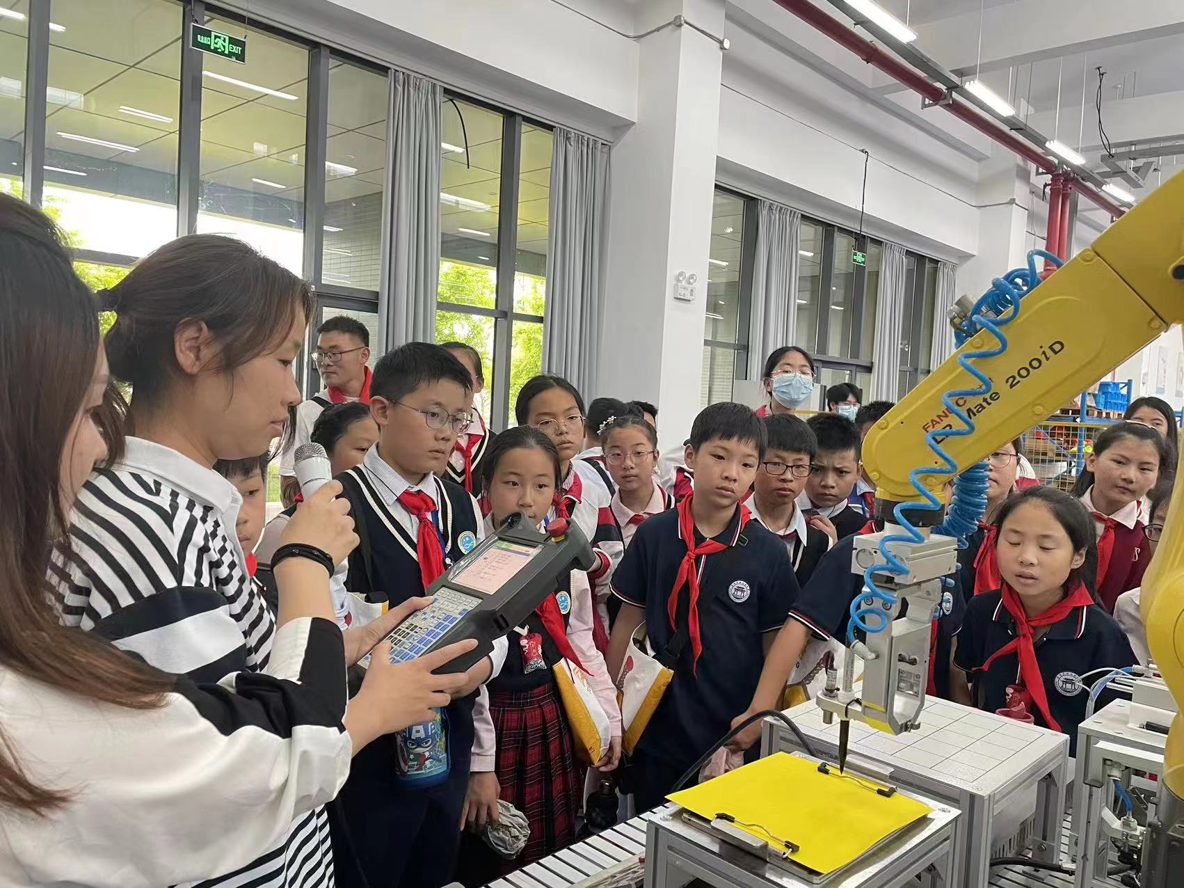 517下午,我校在溧水校区举办中小学职业体验开放日活动,推出校园电视台、水准测量、中医康复技术、机械手臂、PLC电子设备、智能网联汽车、现场直播、雕版印刷、艺术设计、茶艺和产品设计等类型多样、各具特色的体验项目,共青团溧水区委员会带领溧水经济技术开发区小学、溧水区状元坊小学、南京市游府西街小学溧水分校和金陵中学溧水分校等4个学校46名师生到校了解职教魅力和学校办学特色。