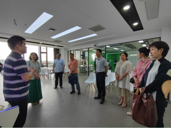启动仪式前,校党委副书记史献平同与会嘉宾一同参观数字财商学院智慧电商产学研中心。中心指导教师介绍了该中心的发展历程,得到了与会嘉宾的高度赞许。该中心的建立不仅是深化产教融合、校企合作、校地合作,提高职业教育适应性的关键一步,也是将“跨境电商+直播”创新型新业态模式与专业课程的深度融合,为地方政府及企业培养直播电商新人才、提供新技术新方法,满足直播及跨境电商行业对专业人才的需求,迈向具有引领作用的高水平专业化产教融合实训基地的重要一步。