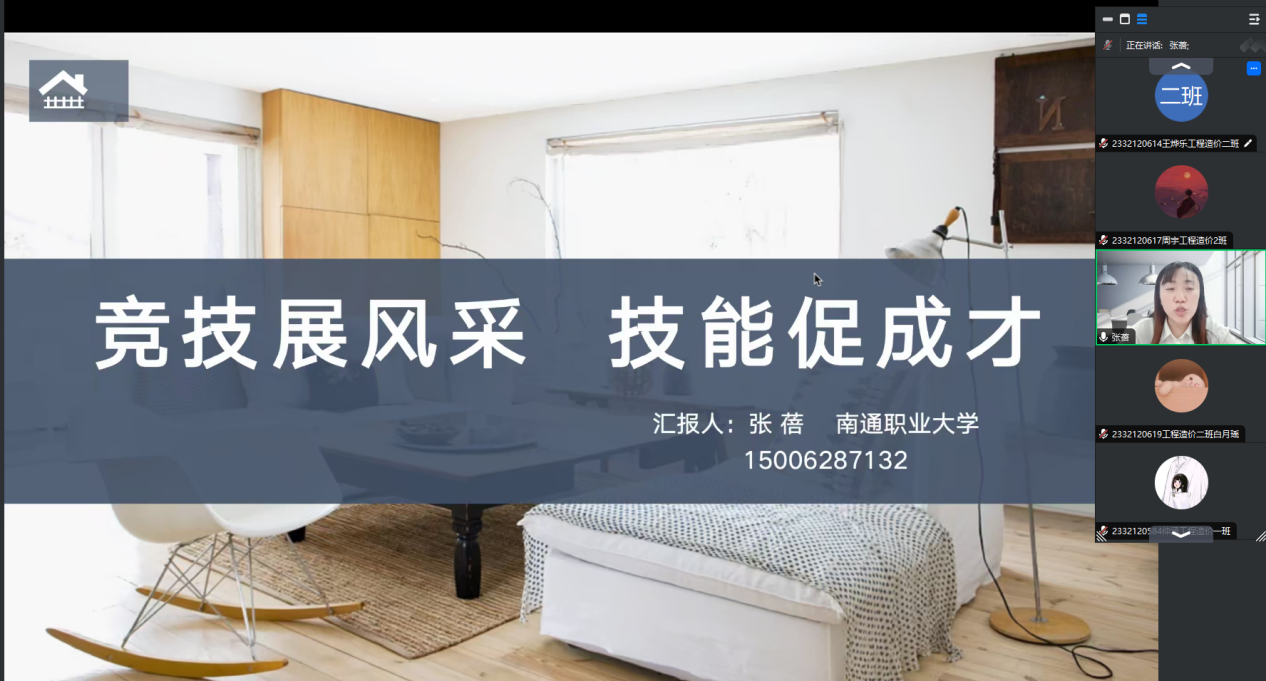 为弘扬工匠精神,引导学生提升职业技能,走技能成才、技能报国之路,值此2024年职业教育活动周之际,康养工程学院于5月29日邀请了南通职业大学张蓓老师为我院学生开展主题为“竞技展风采,技能促成才”的线上讲座。讲座由杨国平老师主持,学院约50多名同学参加此次活动。