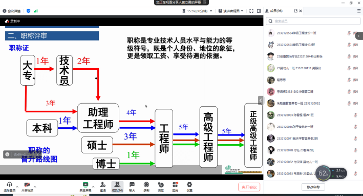 2013级建筑工程造价专业优秀毕业生黄立勇目前任职于南京南房建设监理咨询有限公司,历任监理员、专业监理工程师、总监理工程师等职务,先后获得国家注册监理工程师、一级建造师等职业资格证书。他鼓励同学们积极提升自己的专业能力,与学弟学妹们分享了注册造价工程师、注册监理工程师等职业资格考试的报名条件和流程。2019级老年服务与管理专业优秀毕业生殷佳婕目前任职于上海市浦东新区浦惠明川养护院,毕业后她用热爱坚守初心,用青春守护夕阳,扎根“银发行业”默默提升专业技能,荣获义乌护理员技能比赛第一名、义务技术标兵、义务技术能手等多项荣誉,并持有养老照护员高级证书。她在分享中与学弟学妹们强调了技能的重要性,俗话说“打铁还需自身硬”,她建议学弟学妹们在校期间要修炼内功,认真学习专业知识和操作技能,同时可以学习办公软件使用和社工基础知识,以便在求职过程中为自己“赋能”,提升自身的职场竞争力。2019级幼儿发展与健康管理专业优秀毕业生孙青青目前任职于庄曹大地幼儿园,她与学弟学妹们分享了自己从幼师小白一路成长的历程,与学弟学妹分享如何做一个温柔的幼儿园老师,让孩子在游戏中学习,在学习中游戏,在欢乐中成长。同时,她也为备考教师资格证的同学分享了自己的备考经验,以自身备考的坎坷经历鼓励学弟学妹们要保持积极的心态,坚持不懈地学习,相信自己,定能成功!