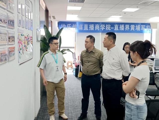 伯乐传媒人力资源部负责人刘言、培训专员郑安琪一行热情接待我院到访人员,对我院各位老师的来访表示欢迎。刘言带领老师们参观公司直播商学院、视觉部等有关部门,从企业发展历史、运营业务、“倒金字塔”式四级人才筛选、师徒制产教结合等方面向老师们做简要介绍。陈乃鸿就区域性产教融合、学生就业关注点等内容与刘言进行探讨。双方就校企合作的框架内容、招聘需求、学生专业对口就业等方面进行深入会谈。会谈中,双方均表示将进一步加强合作,共同推动人才培养与产业发展的深度融合。