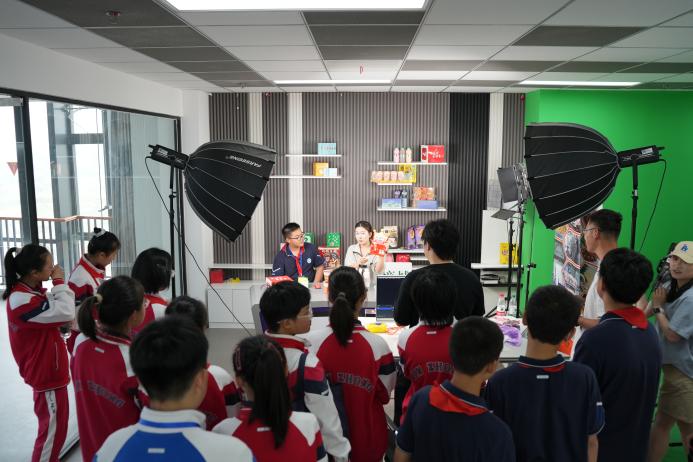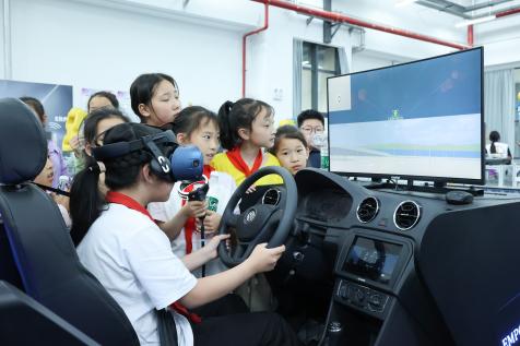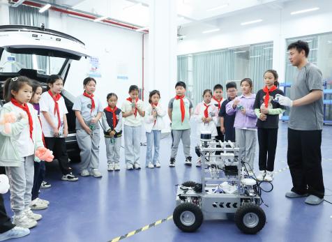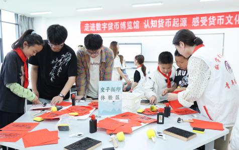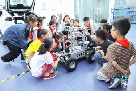 活动当日,小学师生们首先来到新能源汽车体验中心,在这里,一辆辆造型独特、科技感十足的新能源汽车让孩子们大开眼界。专业讲师及社团学生深入浅出地讲解新能源汽车的构造、工作原理以及环保优势,孩子们听得聚精会神,不时提出各种奇思妙想的问题,眼神中满是对科技的渴望与探索的欲望。随后,在“理财小达人”中小学生职业体验中心,孩子们仿佛置身于一个微型的金融世界。通过模拟银行、超市购物等场景,他们学习到了货币的兑换、收支管理等基础金融知识,还亲自体验了如何合理规划零花钱,理财意识在轻松愉快的氛围中悄然扎根。接着,小学师生来到直播电商中心,了解了直播电商的运营模式,部分同学还鼓起勇气坐在镜头前,体验了一把主播的工作,虽然略显稚嫩,但眼中闪烁着兴奋与好奇的光芒。最后一站是“芯·艺”艺术实践工作坊,这里创意无限,孩子们发挥自己的想象力,用鲜花和树叶等创作出了一幅幅充满童趣的作品。