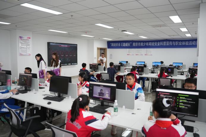 中学师生们则沿着另一条路线进行学习体验。他们的第一站是非遗活态化工艺美学体验,在科创楼的展厅里,参观精美的设计作品。随后来到直播电商中心,进一步了解直播电商行业的运营细节,感受新兴行业的蓬勃发展。在网络安全青少年体验中心,同学们通过模拟网络攻击与防御场景,深刻认识到网络安全的重要性,学习了如何识别网络诈骗、保护个人隐私等知识,增强了网络安全意识和自我保护能力。最后一站是智慧养老与康复治疗职业体验,同学们通过模拟护理场景、中医推拿与展示、骨骼健康监测,了解养老与康复治疗行业的职业要求和技能,在与模拟老人的互动中,学会了尊老助老,培养了关爱他人、服务社会的责任感。