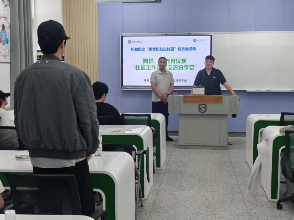 两位校友分别以“扎根基层,服务社区”和“社区工作的挑战与机遇”为主题,分享了自己在社区工作中的点滴经历。他们谈到,初入社区工作时,面对繁杂琐碎的事务和形形色色的居民,也曾感到迷茫和压力,但通过主动学习政策法规、积极组织社区活动,逐渐掌握了与居民沟通的技巧和解决问题的方法。为让学生能真正理解这些技巧和方法,两位校友还分享了自己的真实工作的案例。比如,在处理邻里纠纷时,不仅要倾听双方诉求,更要站在中立角度,寻找矛盾根源,用真诚和智慧化解矛盾。他们特别强调,社区工作者要有耐心、细心和责任心,要真正把居民的事当作自己的事来办。